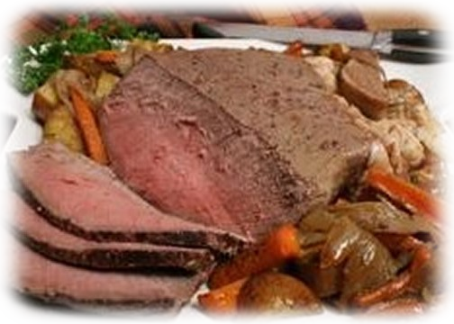 4 to 5 lb beef arm roast or other suitable lean roast2 Tbsp flour 1 tsp chili powder 1 Tbsp paprika3 Tbsp cooking oil 2 medium onions* 16 whole cloves1/3 cup water 2 cinnamon sticks* salt (about ½ tsp to taste)Additional 2 Tbsp flour and ¼ cup water* onions and cinnamon placed on top of the roast while cooking. Can be done in a Dutch oven on top of the stove or in a covered roaster pan in a 325ºF oven.Directions:Combine flour, chili powder, paprika and salt. Dredge pot roast in seasoned flour. Brown roast in oil. Pour off drippings. Stud each onion with 8 whole cloves. Add water, onions and cinnamon sticks to meat. Cover and cook slowly 2½ to 3 hours or until tender. Remove meat to platter. Discard onions and cinnamon. Measure cooking liquid and add enough water to make 2 cups. Mix 2 Tbsp flour and ¼ cup of water. Add to the 2 cup cooking liquid mixture and cook stirring constantly until thickened into a gravy. Serve with roasted vegetables or beans (black beans, pinto beans, or refried beans).