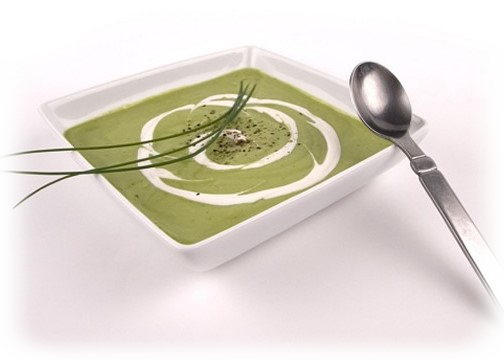 ½ cup chicken broth or 1 packet instant chicken broth seasoning mix, dissolved in ½ cup water½ cup diced onion 1 clove garlic, minced 1 tsp dry white wine1 cup milk or half & half 1 tsp all-purpose flour ¼ cup sour cream¼ avocado (2 oz) pared dash of white pepper to taste 2 tsp olive oilDirections:Enjoy this soup either warm or chilled.In a 1-quart saucepan, heat oil; add onion and garlic and sauté until onion is translucent. Sprinkle with flour and stir quickly to combine; cook, stirring constantly for 1 minute. Gradually stir in dissolved broth mix; add wine and, stirring constantly, bring to a boil. Reduce heat and let simmer for 2 minutes. In a blender container, combine milk and avocado and process until smooth. Add pureed avocado and white pepper to saucepan and stir to combine. Let simmer until heated through. Divide soup into 4 bowls and top each portion with 1 Tbsp sour cream. You may also enjoy this soup chilled.