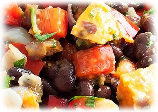 12 oz peeled cooked potatoes (red or white), cut into cubes ½ medium tomato, cut into 4 or more wedges¼ cup diced red bell pepper ¼ cup drianed whole-kernel corn2 Tbsp each: diced red onion and celery 4 pitted black olives, sliced1 ½ tsp seeded & minced chili (serrano or jalapeno) 1 tsp chili powder1 Tbsp plus 1½ tsp red wine vinegar 2 Tbsp vegetable oil½ tsp salt and a dash of pepperDirections: