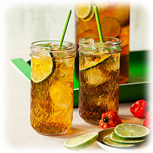 7 cups boiling water 6 black tea bags 2/3 cups sugar lime slices1 habanero chili halved (w/seeds) 2 cups ice plus more for servingDirections:In a large heatproof bowl or pitcher, stir together boiling water with sugar, tea bags and chili.Steep for 7 minutes; strain. Stir in 2 cups of ice. Serve over more ice with lime slices.
